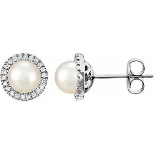 Pearl & Diamond Earrings – 14K white gold earrings with 5.5-6.0mm cultured pearls and 1/8ctw natural diamonds. Friction backs for polished secure sparkle.